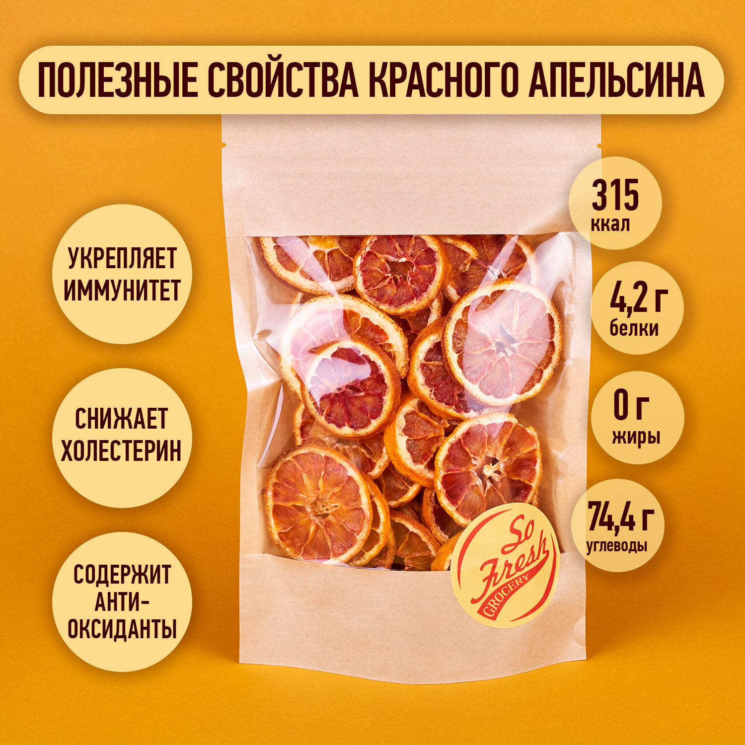 Отзывы на Фруктовые чипсы/ фрипсы/ цитрусовые So Fresh grocery красный апельсин сушеный кольцами без сахара, Иран, 100 г.