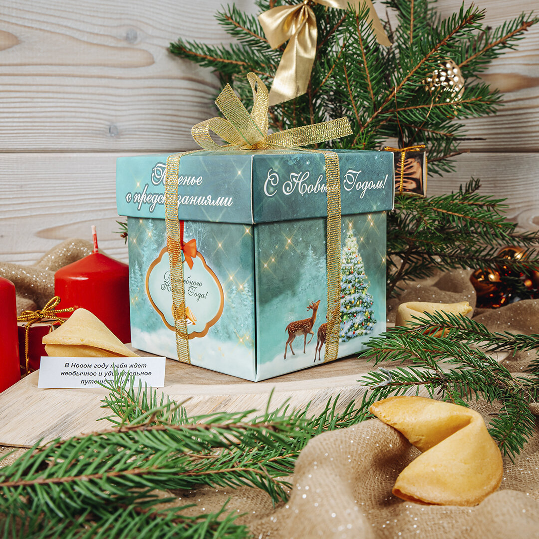 Песочное печенье с предсказанием, коробка в шубере "Умное печенье" 35 г, 880 ₽