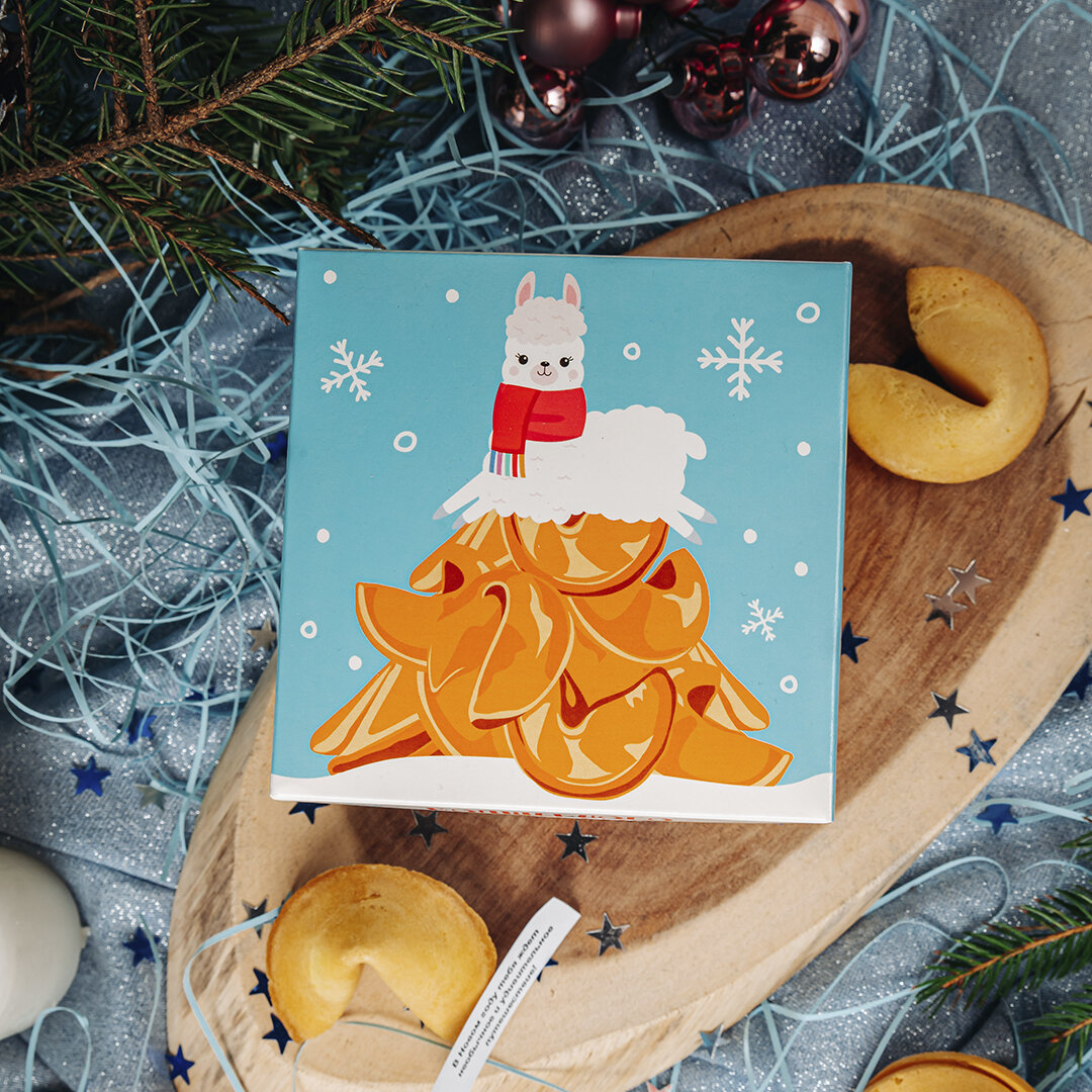 Песочное печенье с предсказанием, коробка в шубере "Умное печенье" 35 г, 880 ₽