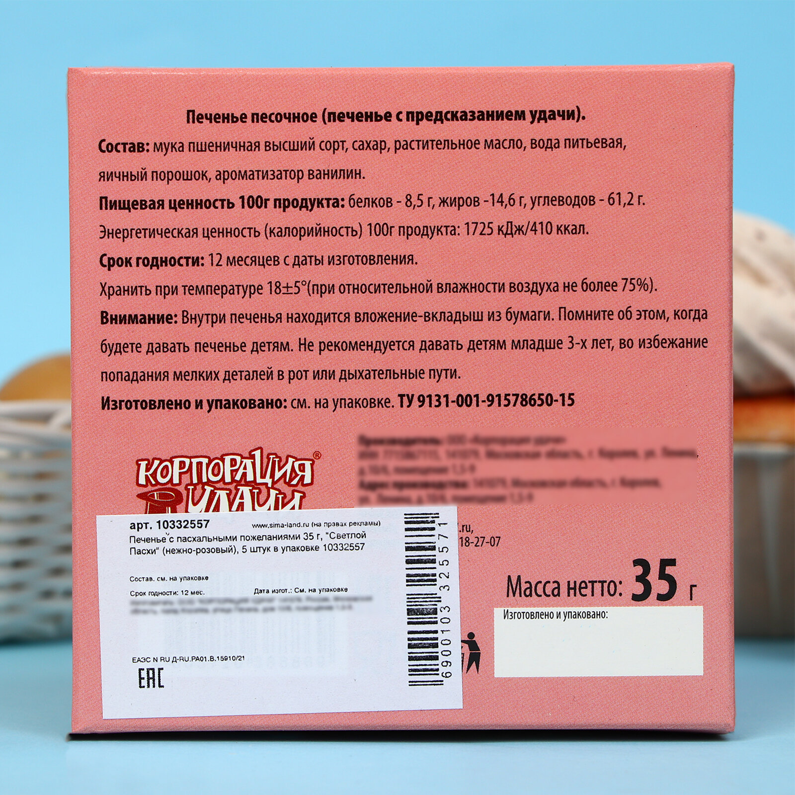 Печенье Корпорация Удачи песочное, с предсказаниями, 35 г