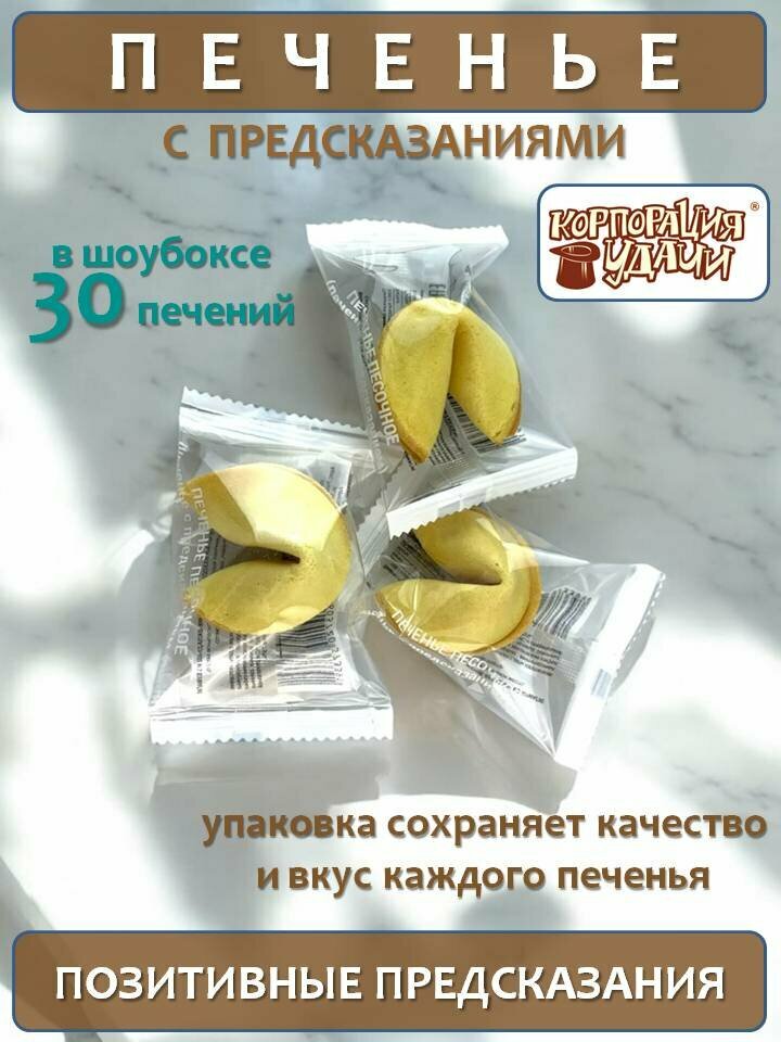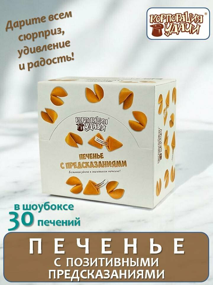 Печенье с предсказаниями "Стандарт" шоубокс для кофейни 30 штук. Подарок. Корпорация удачи информация: