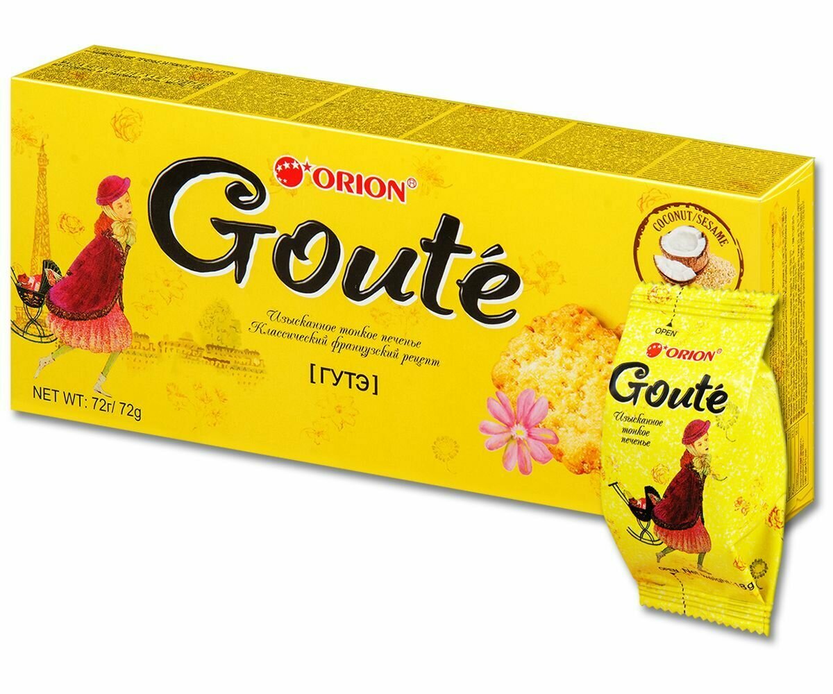 Печенье затяжное Orion Goute, с кокосовой стружкой и кунжутом, 16 шт по 72 г информация: