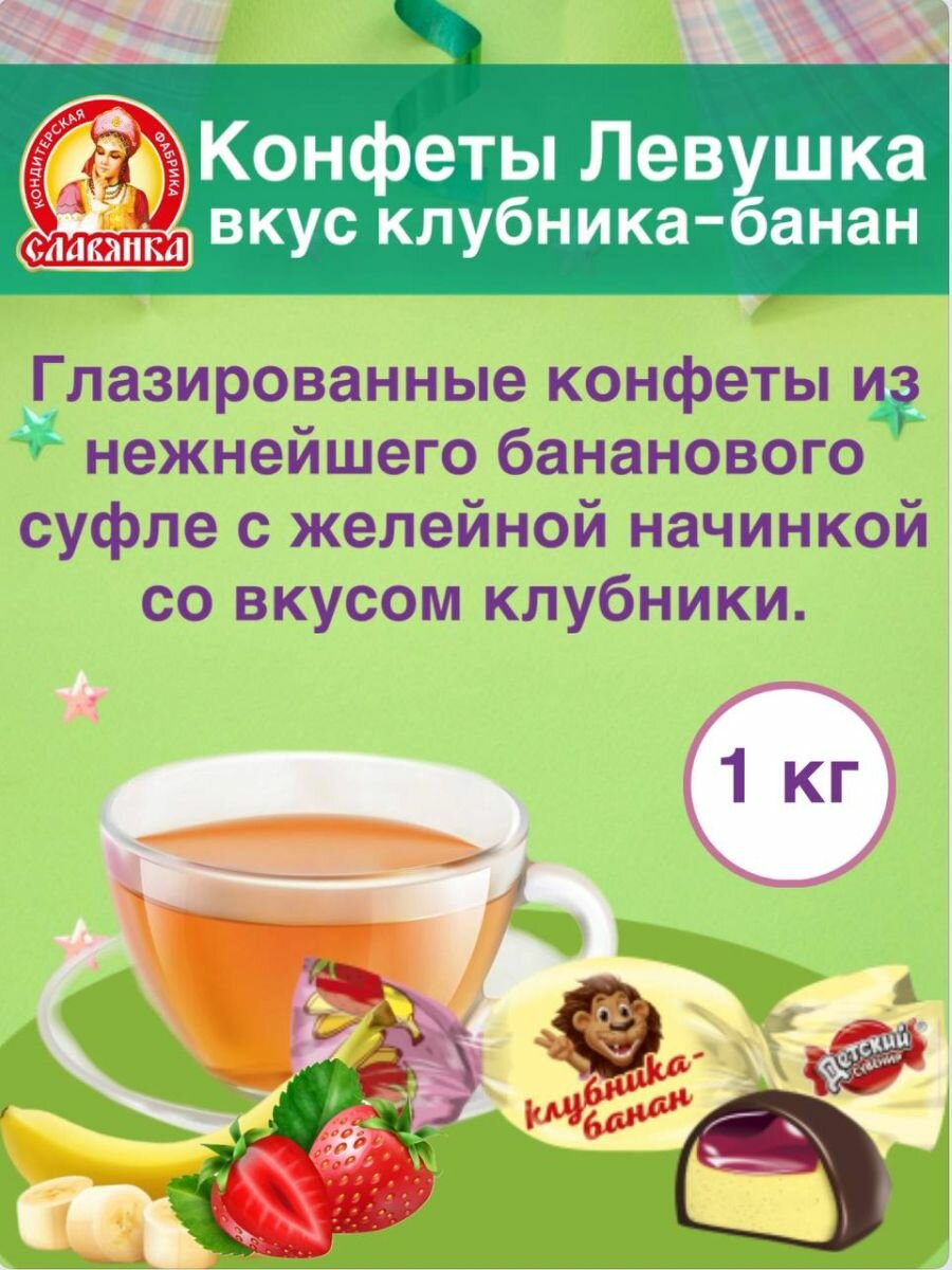 Шоколадные конфеты Левушка Славянка со вкусом клубника-банан 1 кг информация: