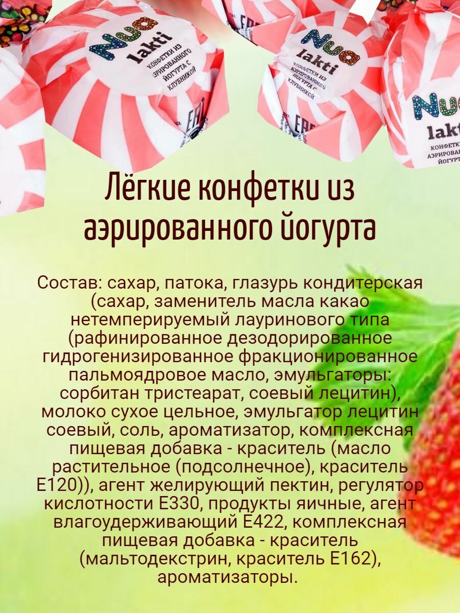 Конфеты Сладуница Лакти йогурт клубника и сливки из аэрированного йогурта 1кг информация: