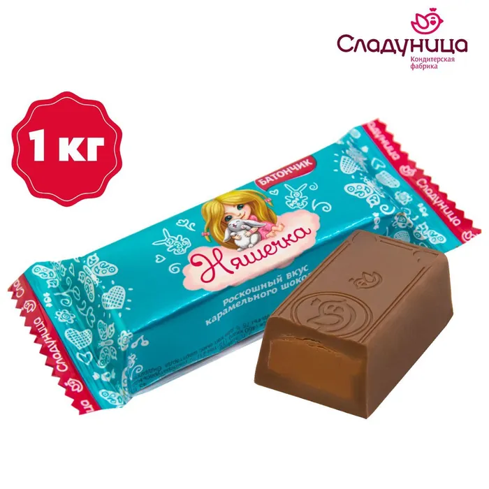 Батончик "Няшечка" типа ассорти со вкусом карамельного шоколада 1 кг информация: