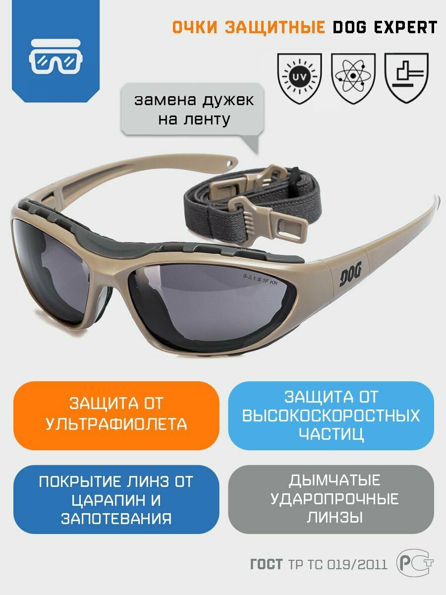 Очки защитные открытые строительные затемненные для защиты глаз спереди и с боков от частиц от ультрафиолета из ударопрочного поликарбоната DOG Expert, Спецрегион, цвет линз затемненные 899 ₽