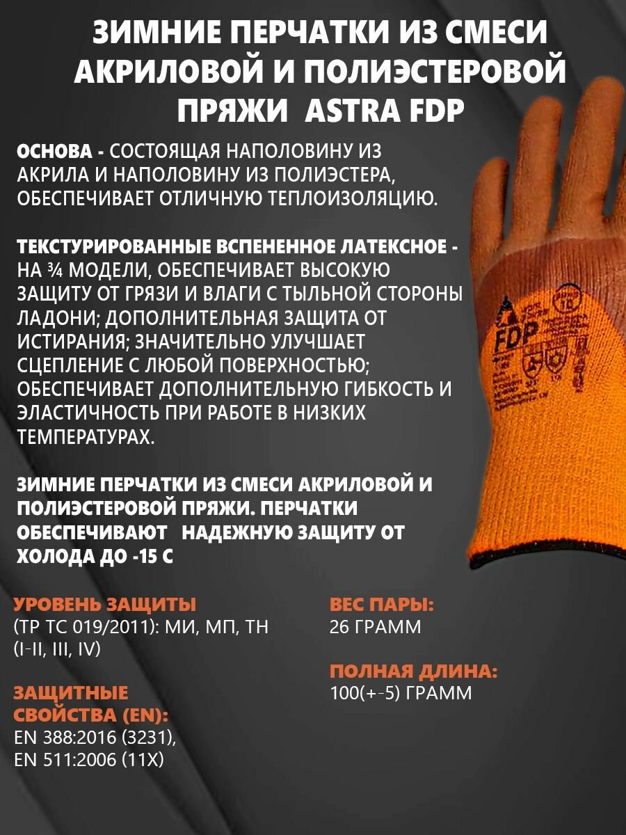 Перчатки утепленные акрил-полиэстеровые с текстурированным вспененным латексом 3/4 ASTRA FDP, размер 10 (XL), 1 пара информация: