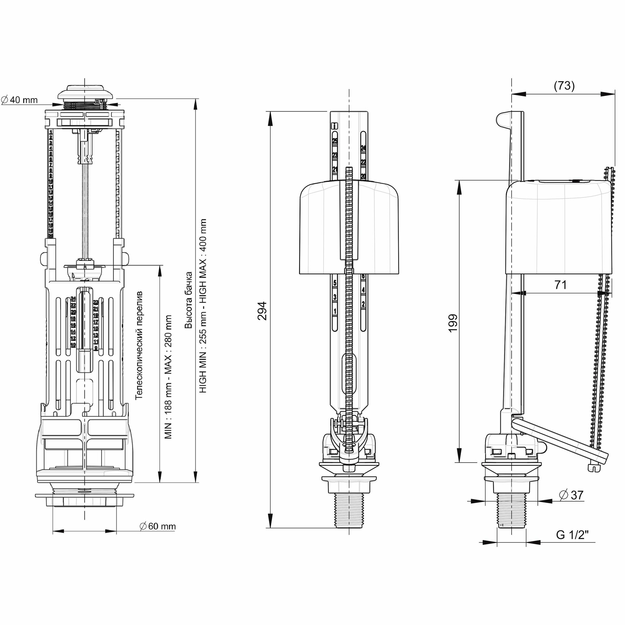 Отзывы на Арматура для бачка унитаза с нижней подводкой (однорежимная кнопка , в сборе с поплавком)