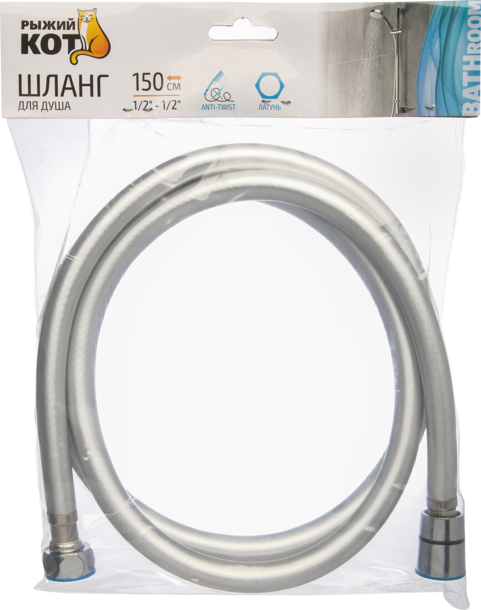 Шланг для душа антитвист ПВХ "Рыжий Кот", диаметр подключения: 1/2" - 1/2", длина: 150 см информация:
