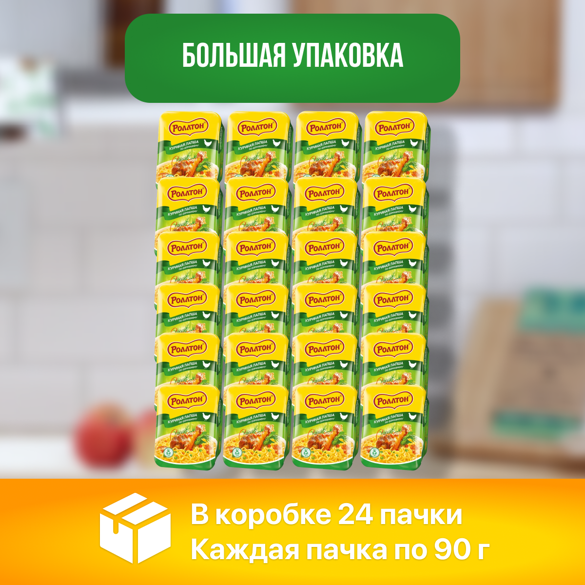 Роллтон Лапша быстрого приготовления яичная по-домашнему Курица вермишель на бульоне 24 шт по 90 г информация: