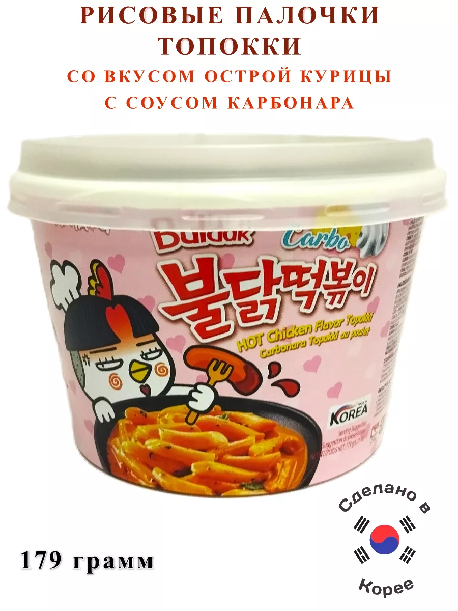 Рисовые палочки топокки Buldak Carbo со вкусом острой курицы информация: