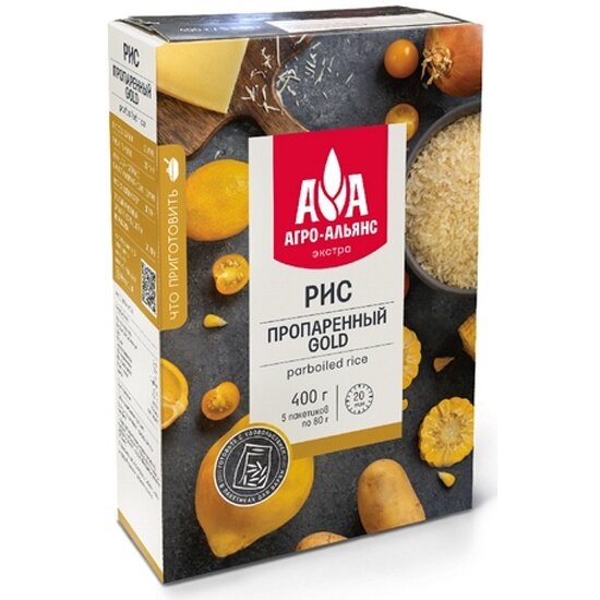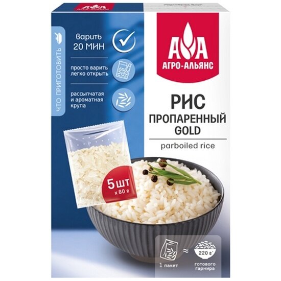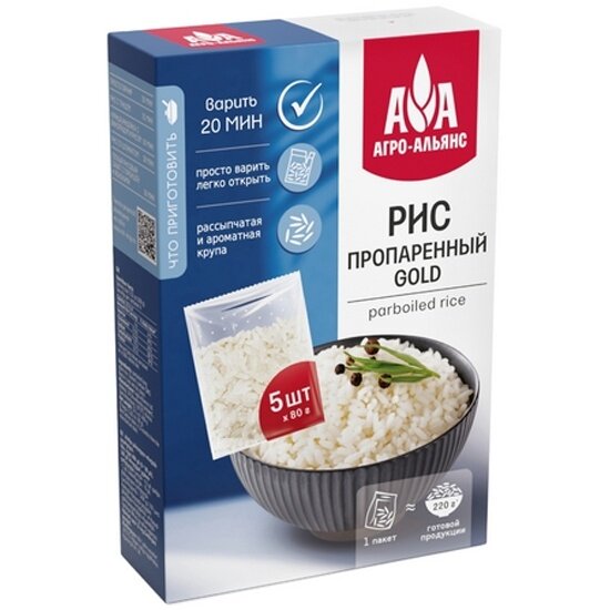 Рис Агро-альянс пропаренный GOLD в пакетах для варки 400 г (5 х 80 г) информация: