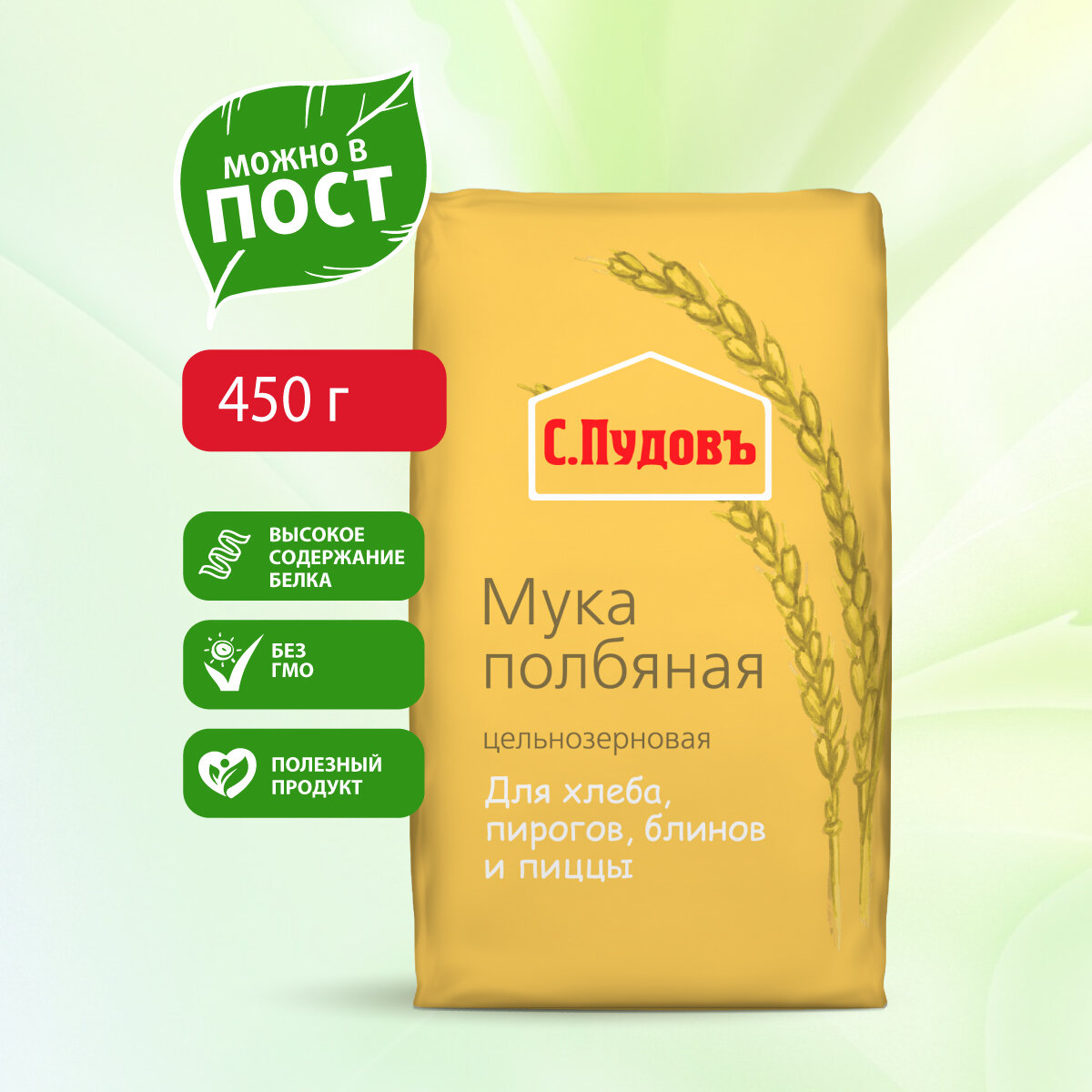 10 цен на Мука полбяная цельнозерновая, С. Пудовъ, для хлеба, пирогов, блинов и пиццы без ГМО, 450 г
