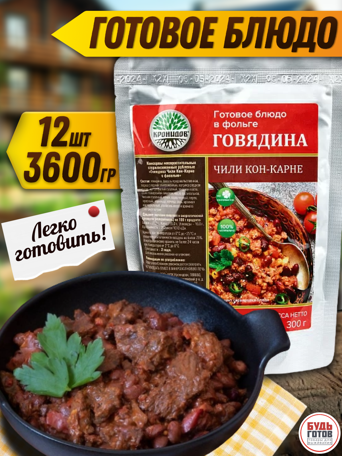 Кронидов Готовое блюдо говядина Чили Кон-Карне, 300 г Комплект 12 штук информация: