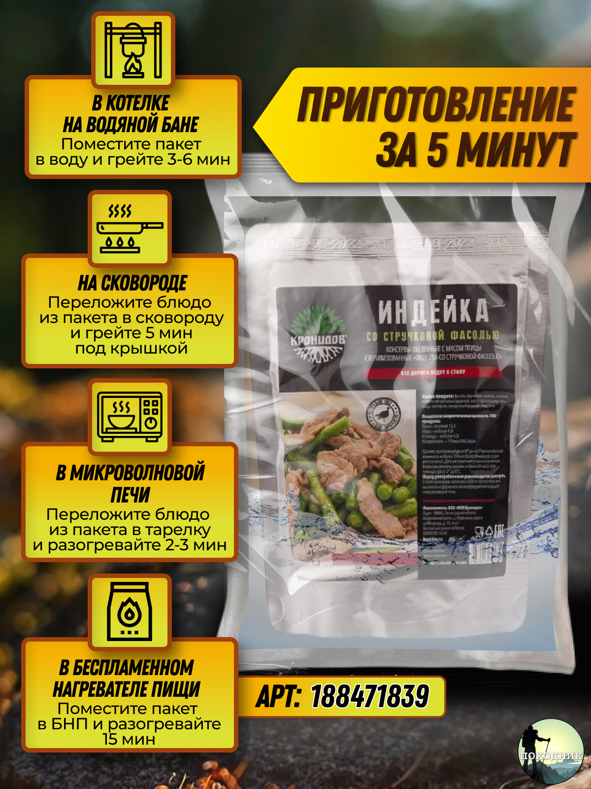 10 цен на 1 шт. Кронидов готовое блюдо Индейка со стручковой фасолью , 300 г, собой / в поход / готовая еда / туризм / в поезд / в дорогу