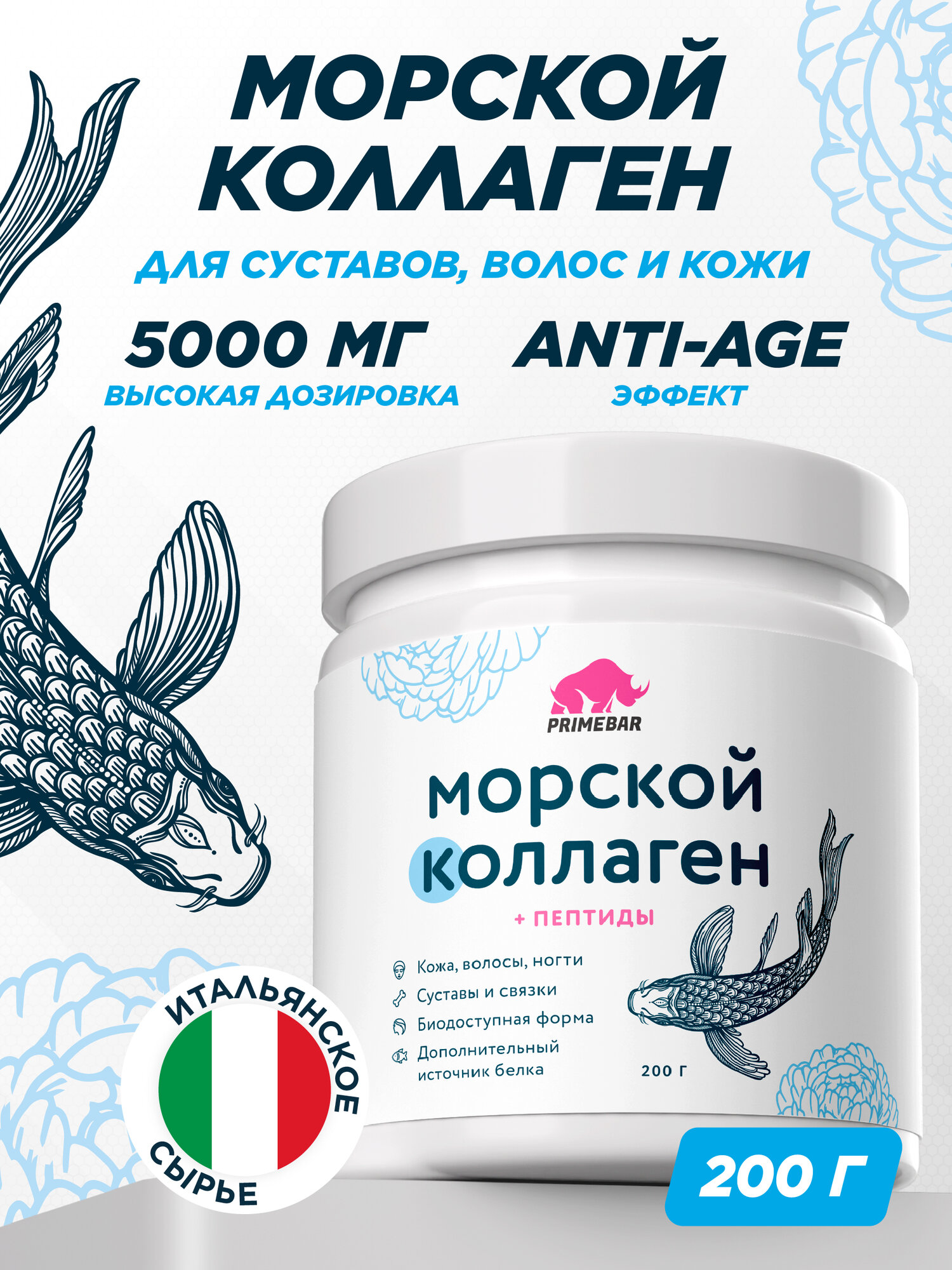 Коллаген PRIMEBAR, рыбий, пептиды, без добавок, для кожи, волос и костей, 200г информация: