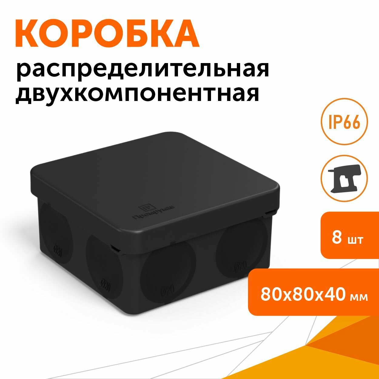 10 цен на Комплект коробка распределительная 60-0210-9005м для прямого монтажа двухкомпонентная 80х80х40, 8шт/уп