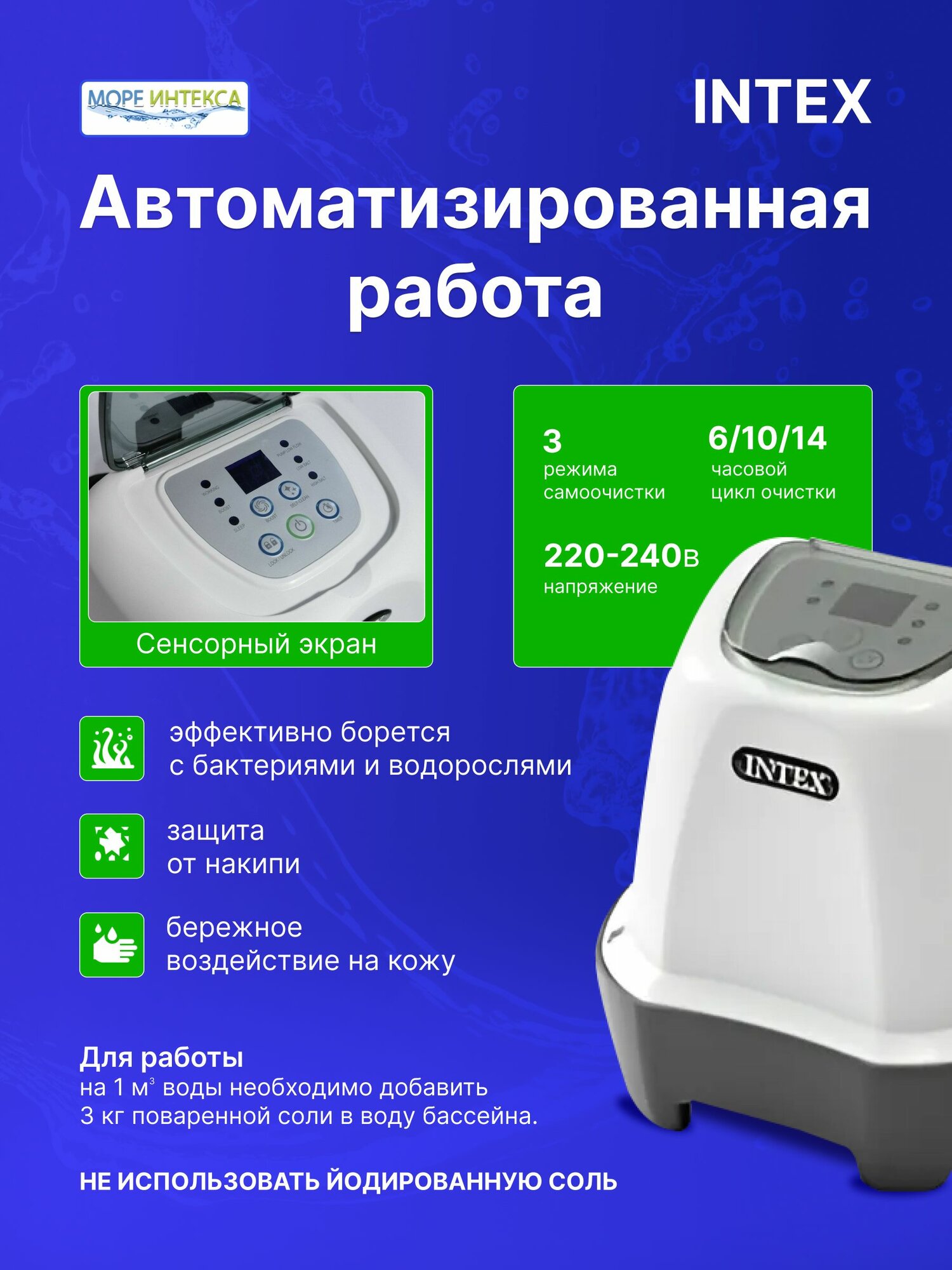 26680 Песочный фильтр-насос 10000л/час с хлоргенератором Intex (система морской воды)