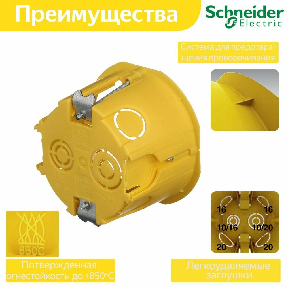 Коробка установочная Schneider Electric Multifix 68x45 круглая для монтажа в гипсокартон IP20 желтая (комплект из 10 шт.)