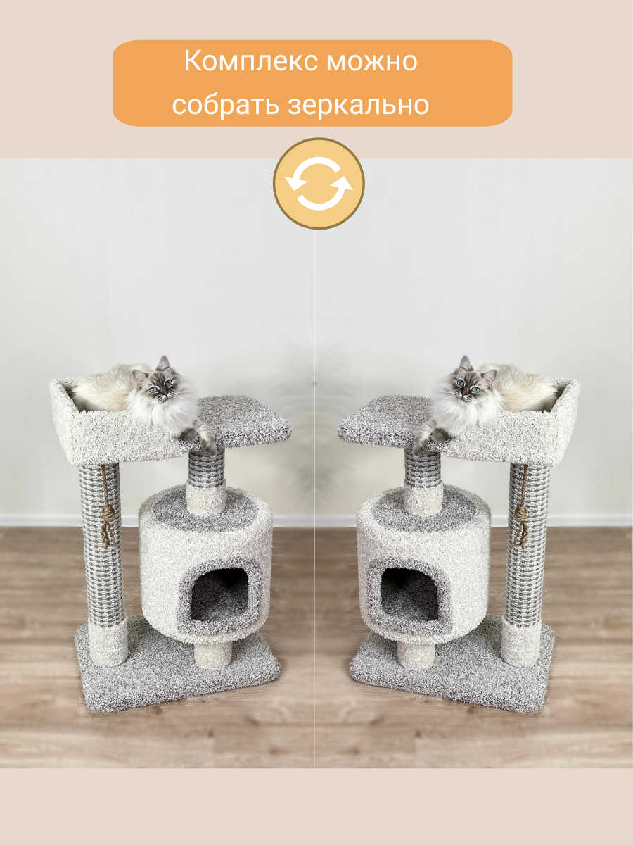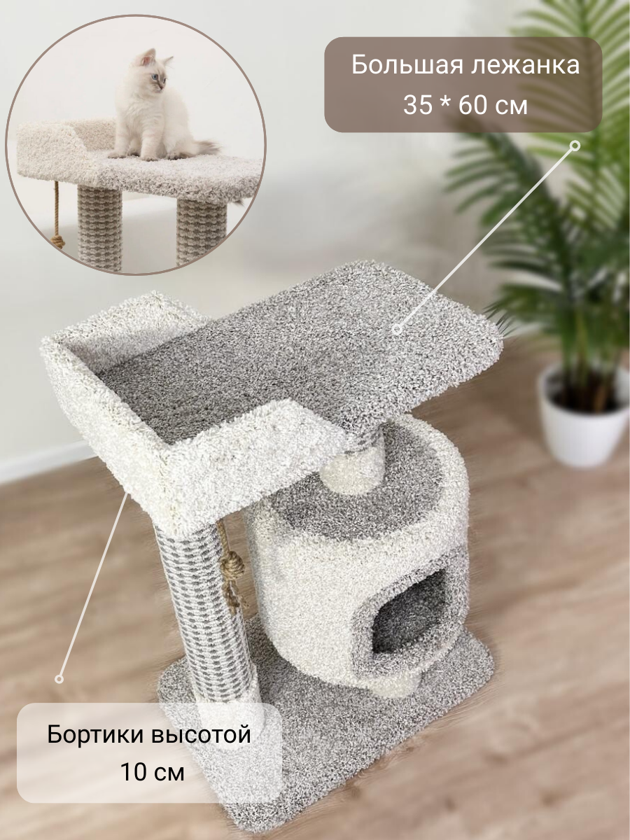 Когтеточка "Котосчастье"с домиком и лежанкой из ковролина, серая с белым 6 633 ₽