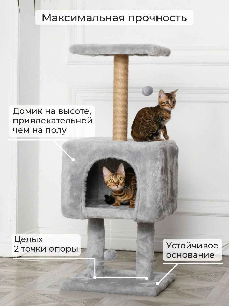 Отзывы на Когтеточка для кошек с домиком "БРИСИ" на ножках, серая, 41х41х103 см