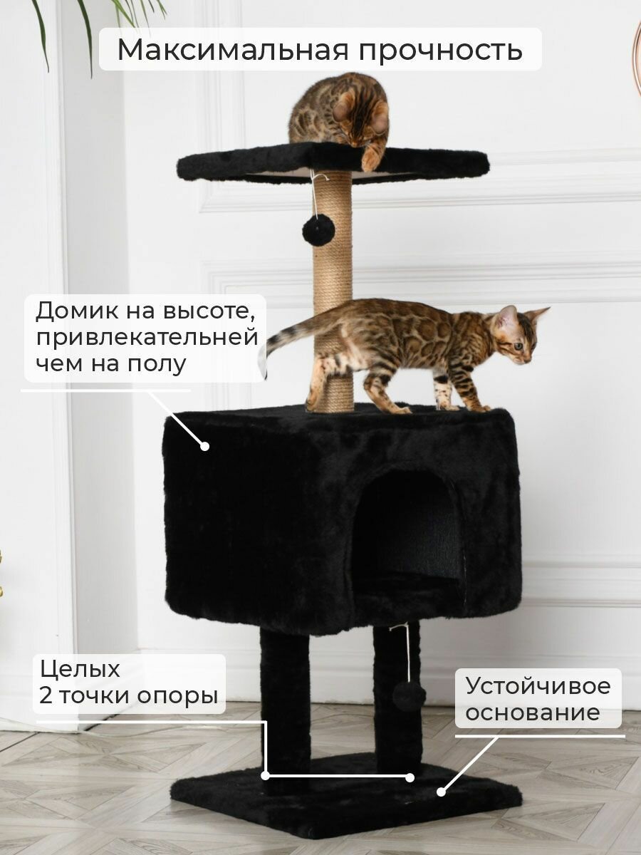10 цен на Когтеточка для кошек с домиком "БРИСИ" на ножках, чёрная, 41х41х103 см
