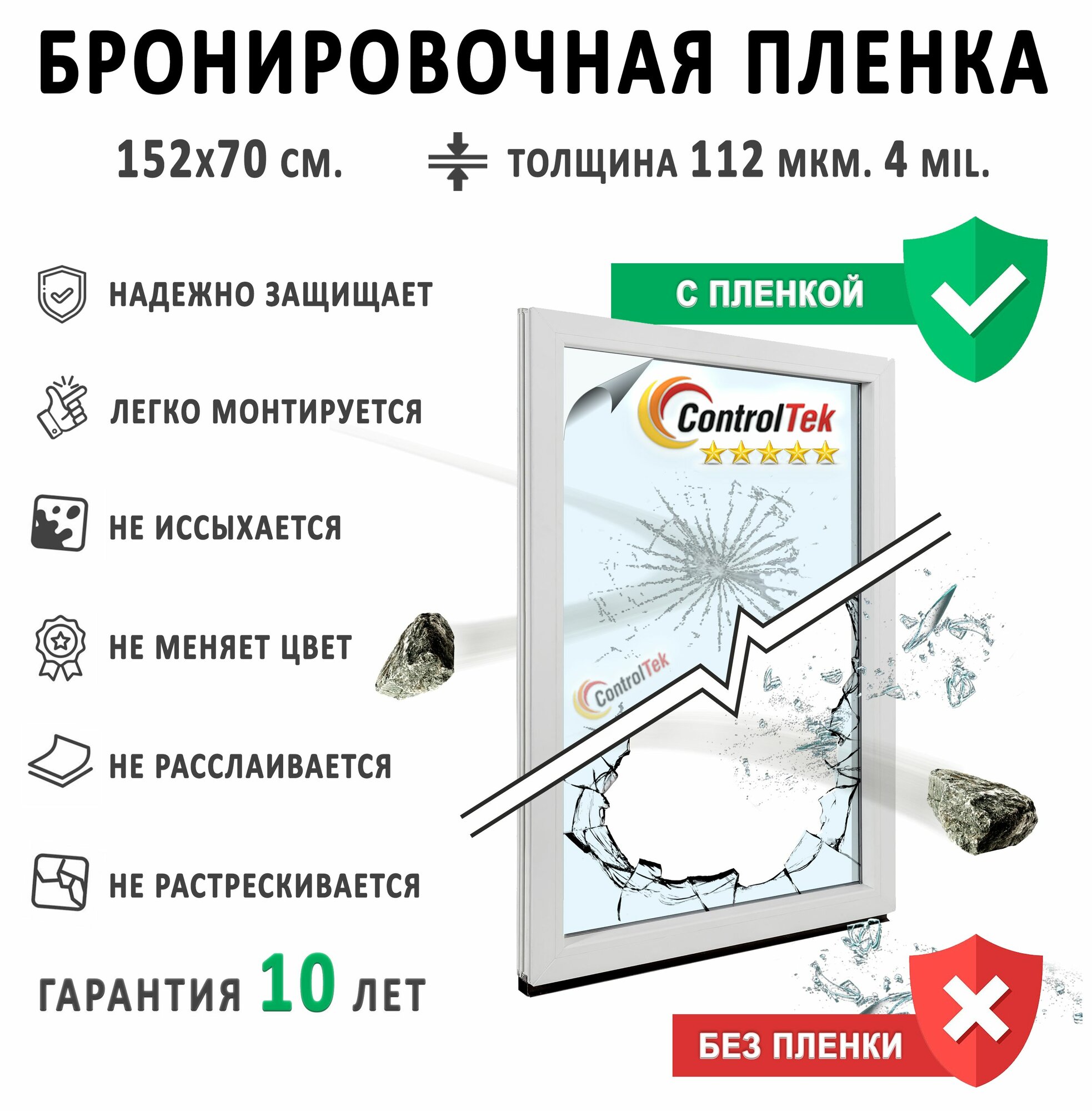 10 цен на Пленка бронирующая для окон, стекол ControlTek Safety (4 mil). Пленка ударопрочная. Размер: 152х70 см. Толщина: 112 мкм.
