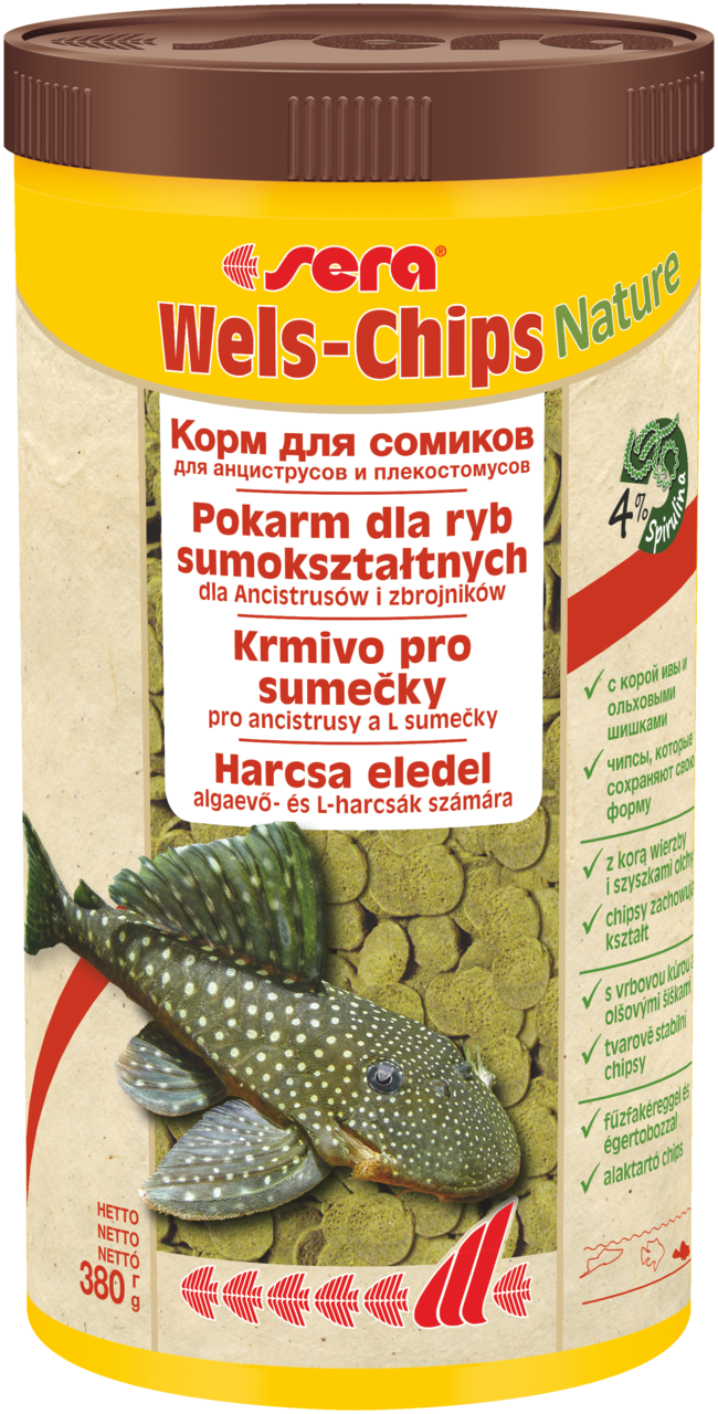 Корм для сомов-прилипал, основной в чипсах "Wels Chips Nature", 1000 мл, 380 г, SERA информация: