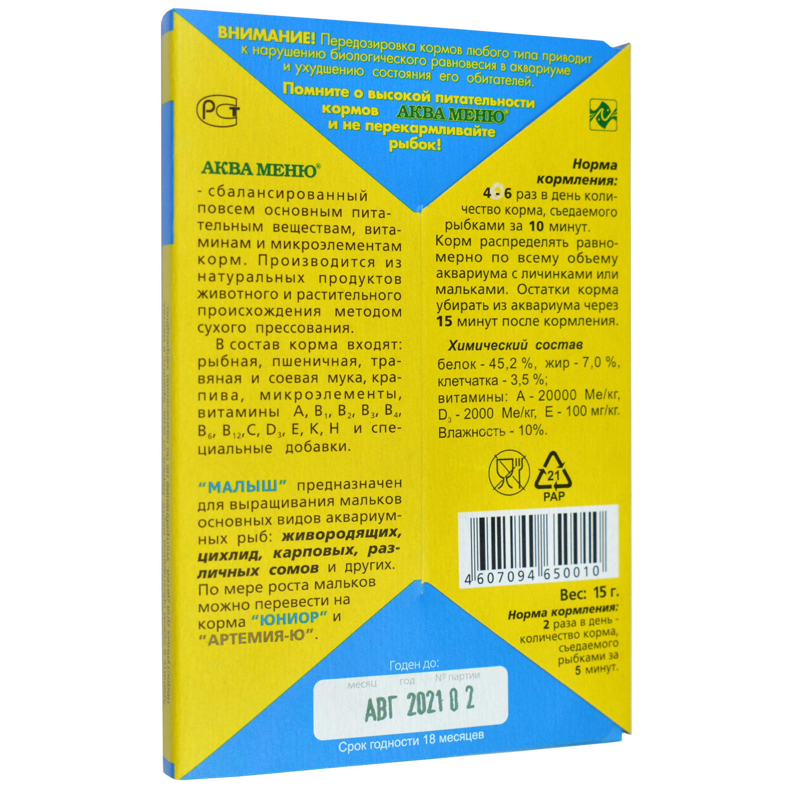Корм сухой Аква Меню Малыш универсальный стартовый для мальков (15 г) информация: