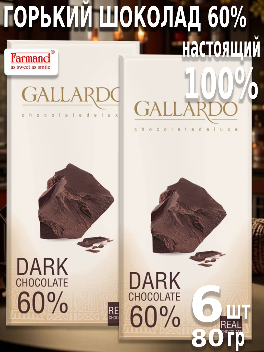 10 цен на Набор шоколада Gallardo горький 60% 6шт по 80гр - 480гр