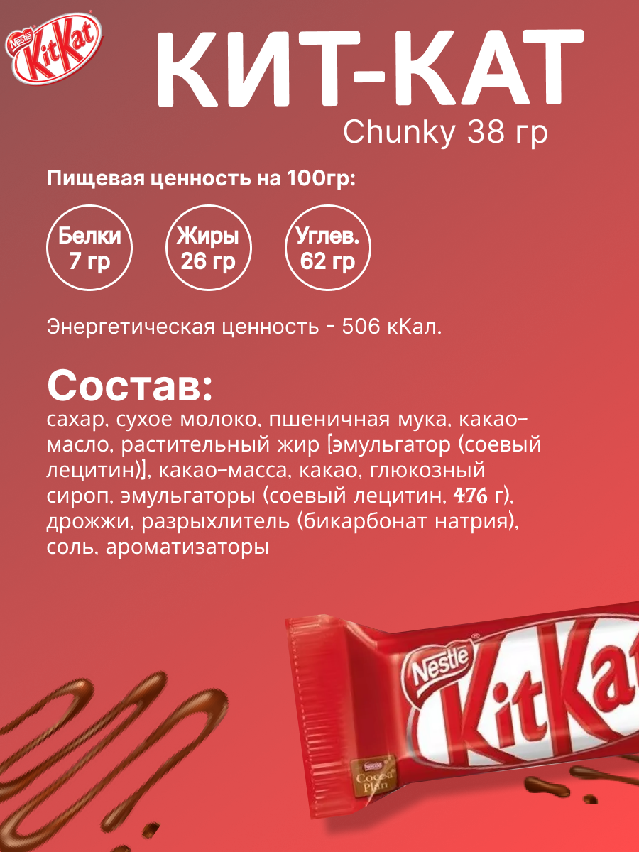 Батончик KitKat "Chunky", молочный шоколад, с хрустящими вафлями, 12x38 г информация: