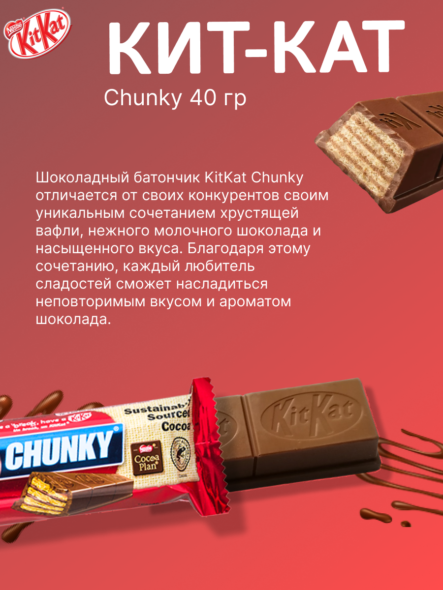 Батончик KitKat "Chunky", молочный шоколад, с хрустящими вафлями, 24x40 г информация: