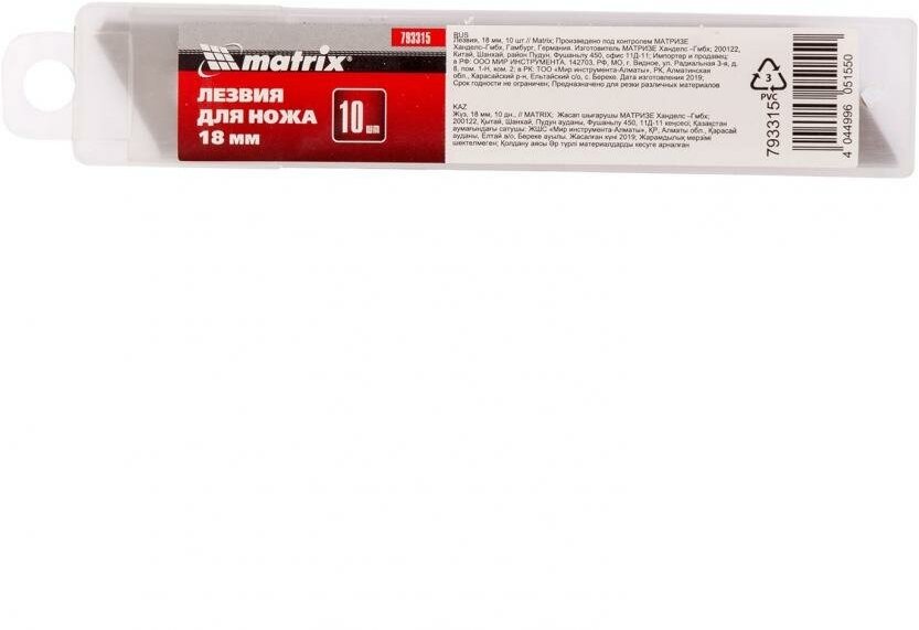 Лезвия, 18 мм, 10 шт Matrix, 793315 информация: