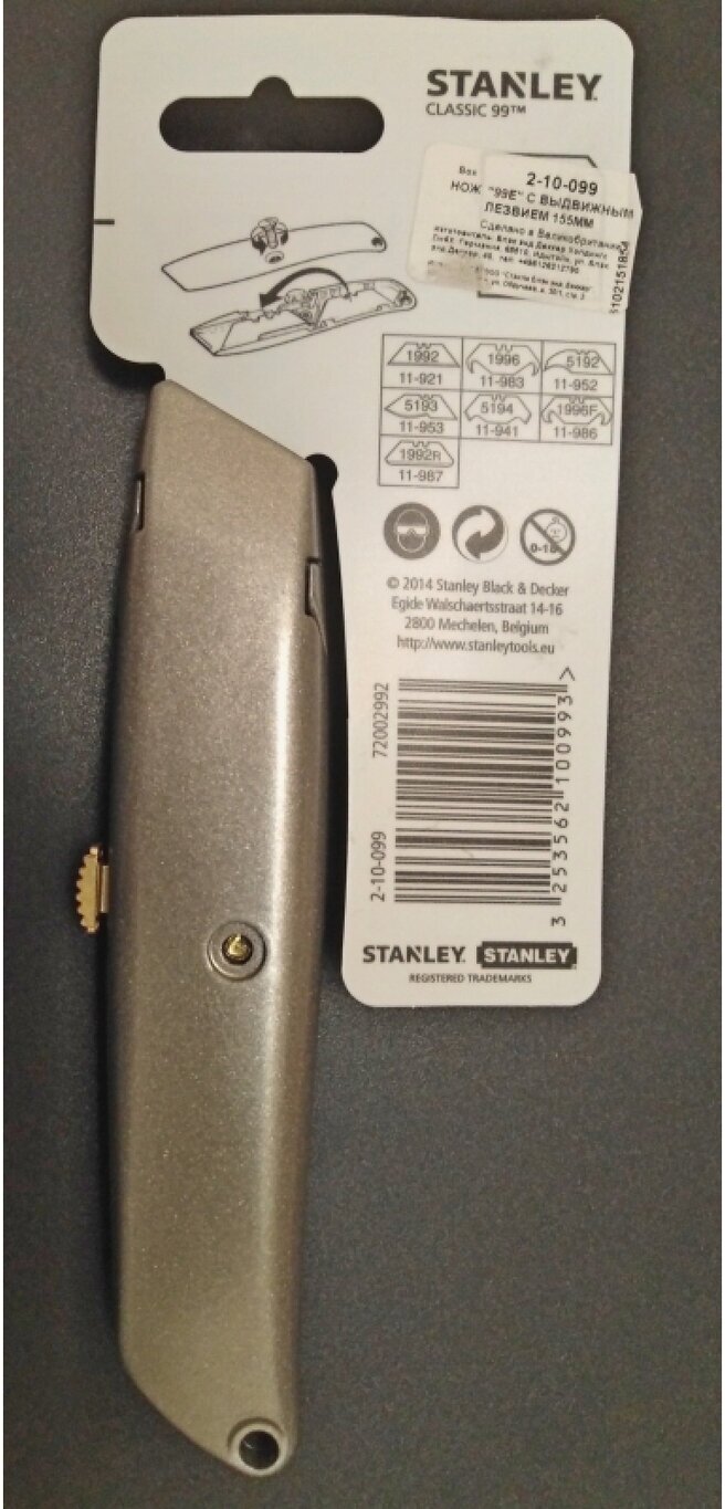 Нож Stanley "99e" с трапецевидным лезвием 155мм 2-10-099 информация: