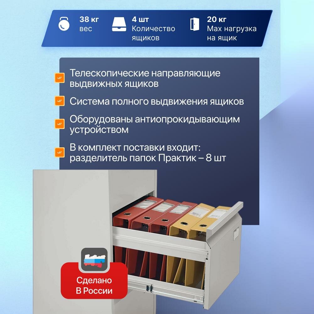 Шкаф картотечный Практик AFC-04, 1330*467*630, 4 ящика