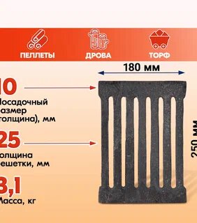 Отзывы на Решетка чугунная колосниковая для печей и каминов РД-3 (250х180) БЛЗ