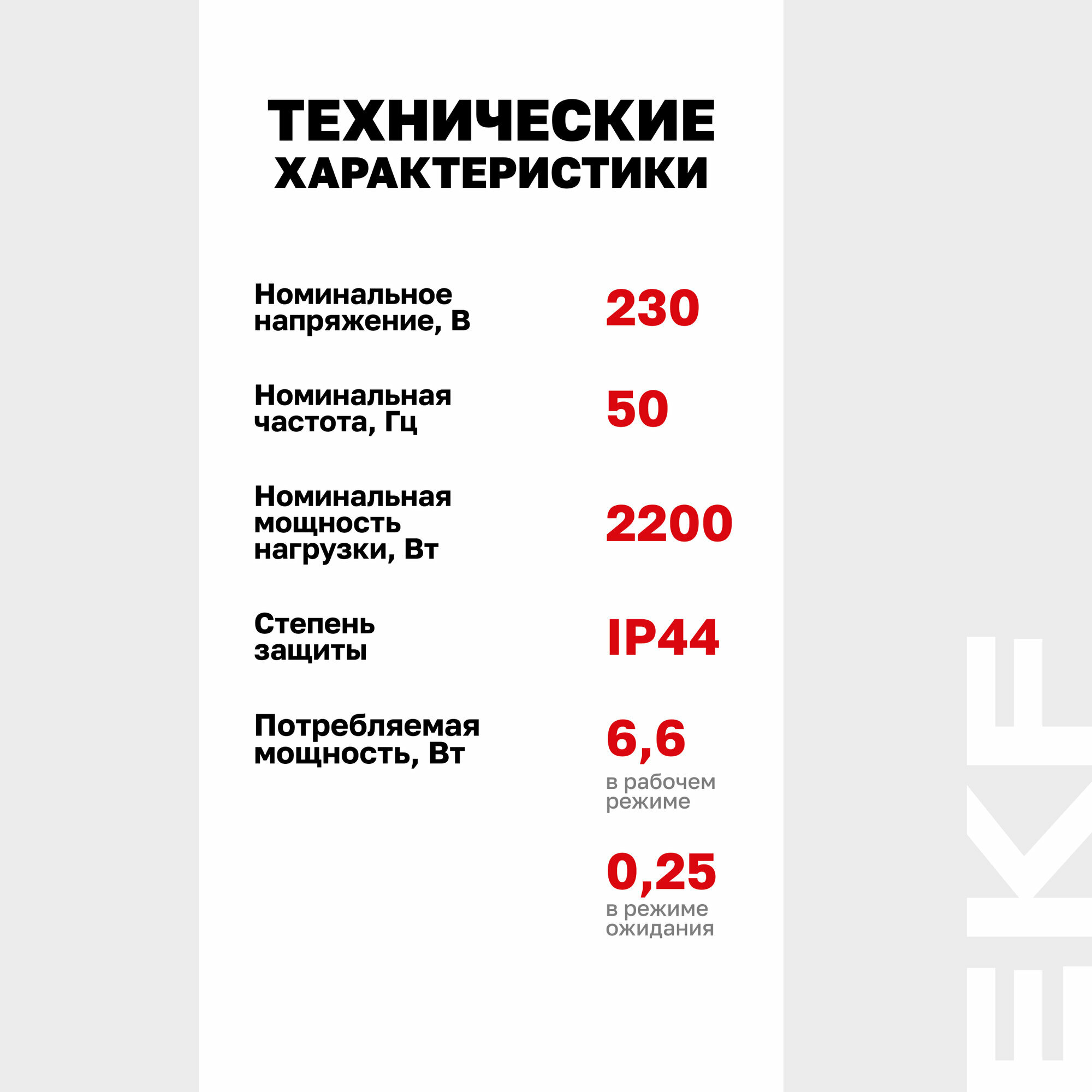 | Номин. напряжение датчика освещенности | 220 В |