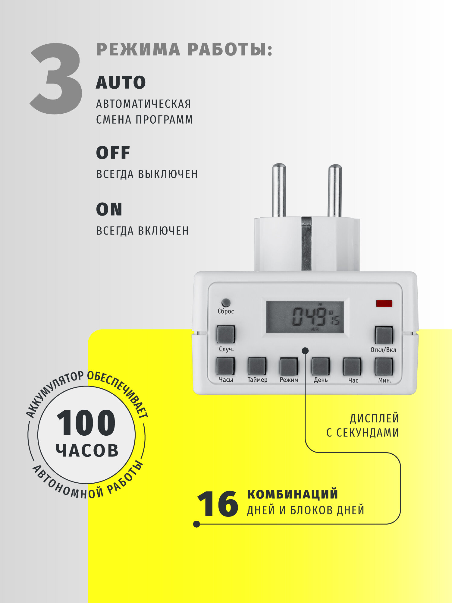 10 цен на Розеточный таймер Navigator 61 556 NTR-E-S02-WH, недельный с жк-диспеем