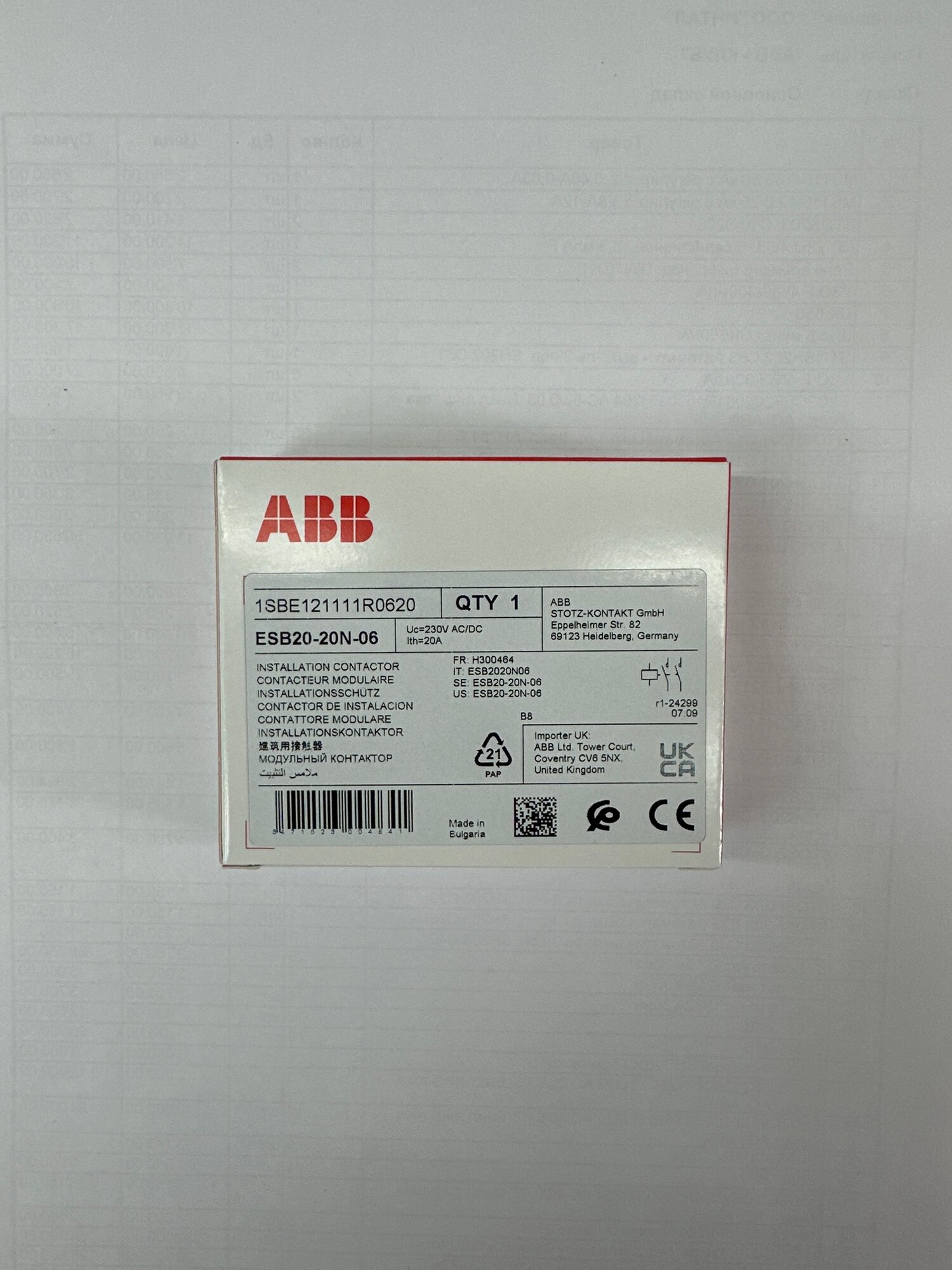 Отзывы на Контактор ABB ESB20-20N-06, 20А, 2НО, катушка 230В AC/DC, модульный, на DIN-рейку
