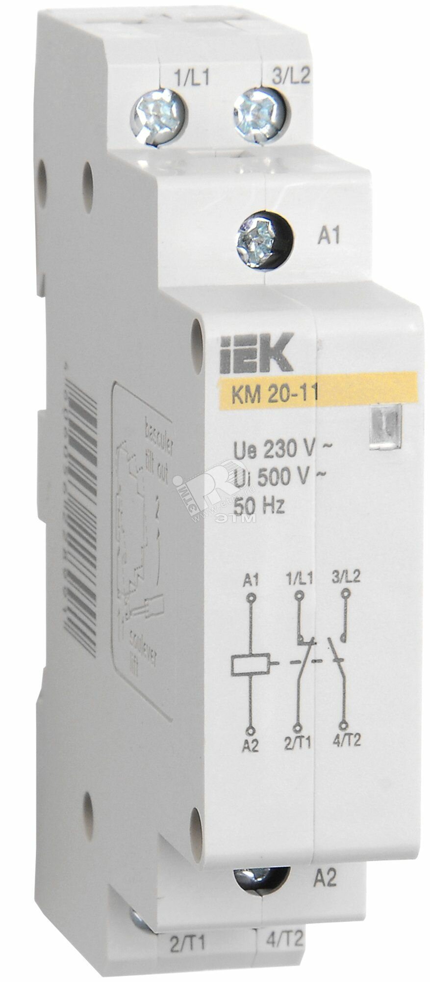 Контактор модульный КМ20-11М AC 20А 2 полюса 1НО+1НЗ катушка 220В ИЭК 1 модуль информация: