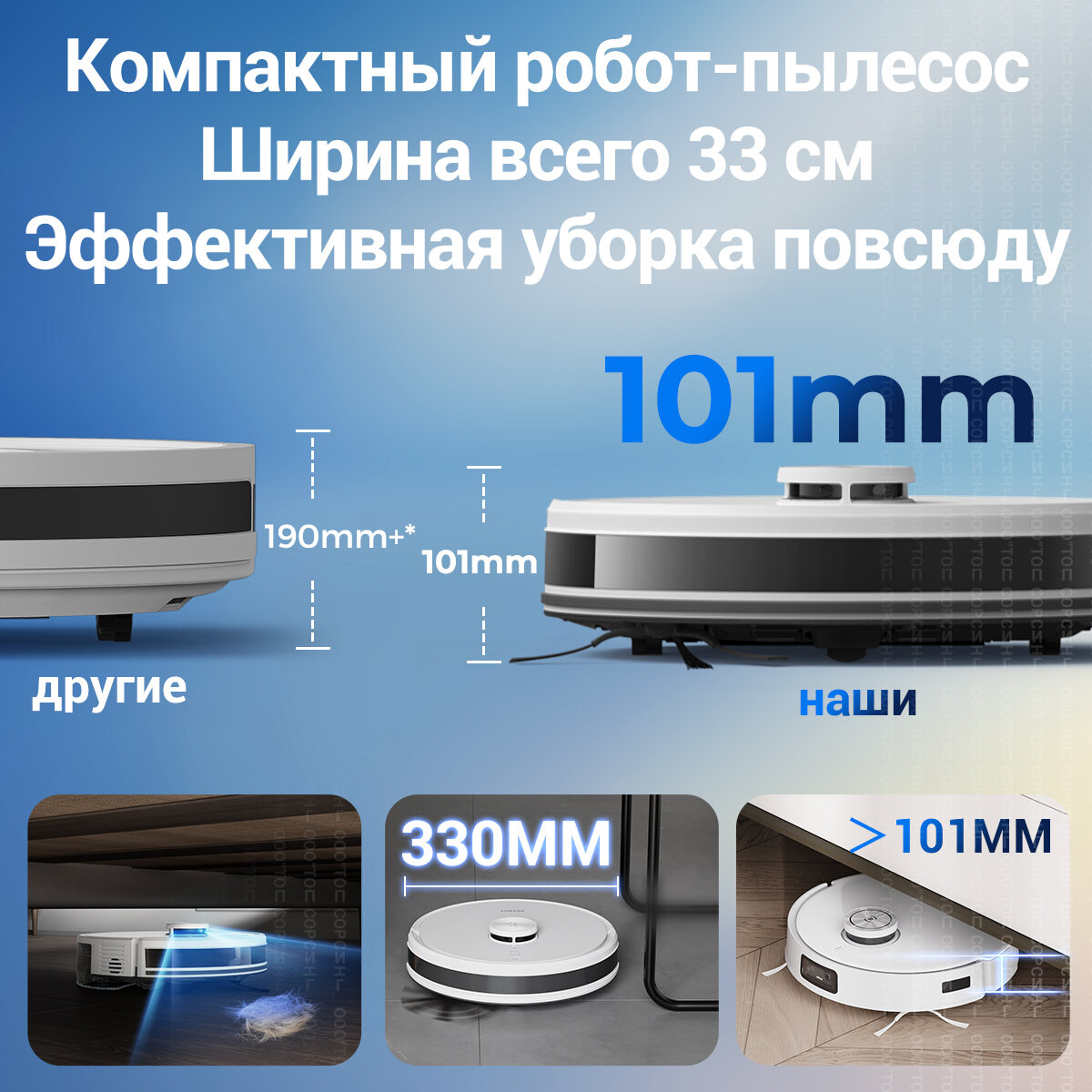 10 цен на Робот пылесос с влажной и сухой уборкой ECOVACS DEEBOT Y1 Pro +для влажной уборки дома , с алисой, 6500 па, белый, Технология предотвращения препятствий