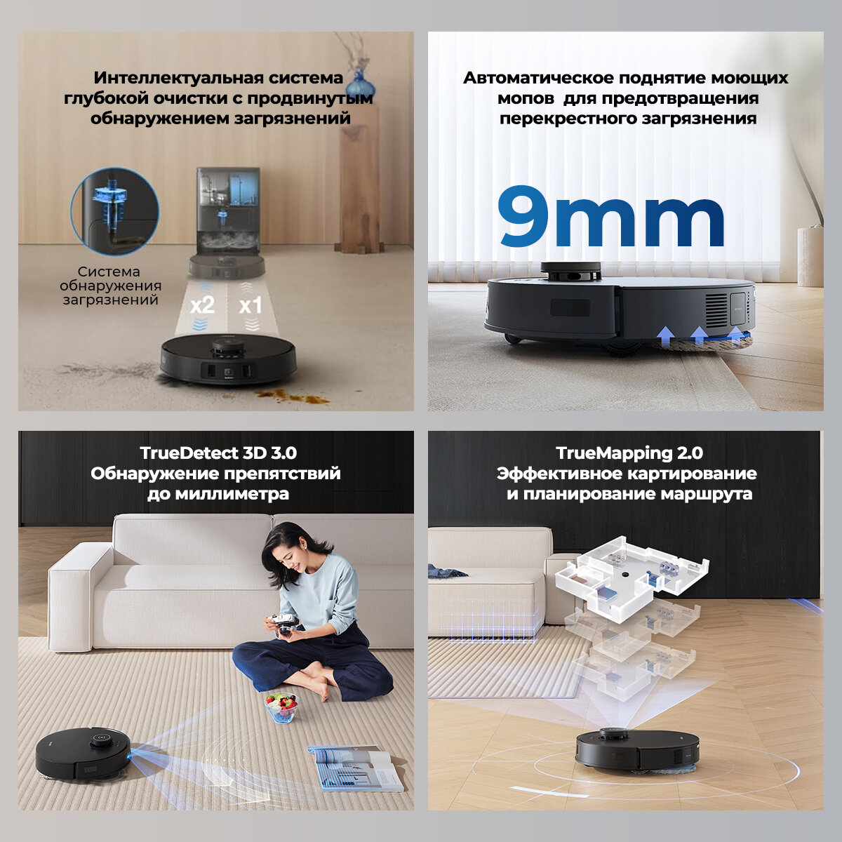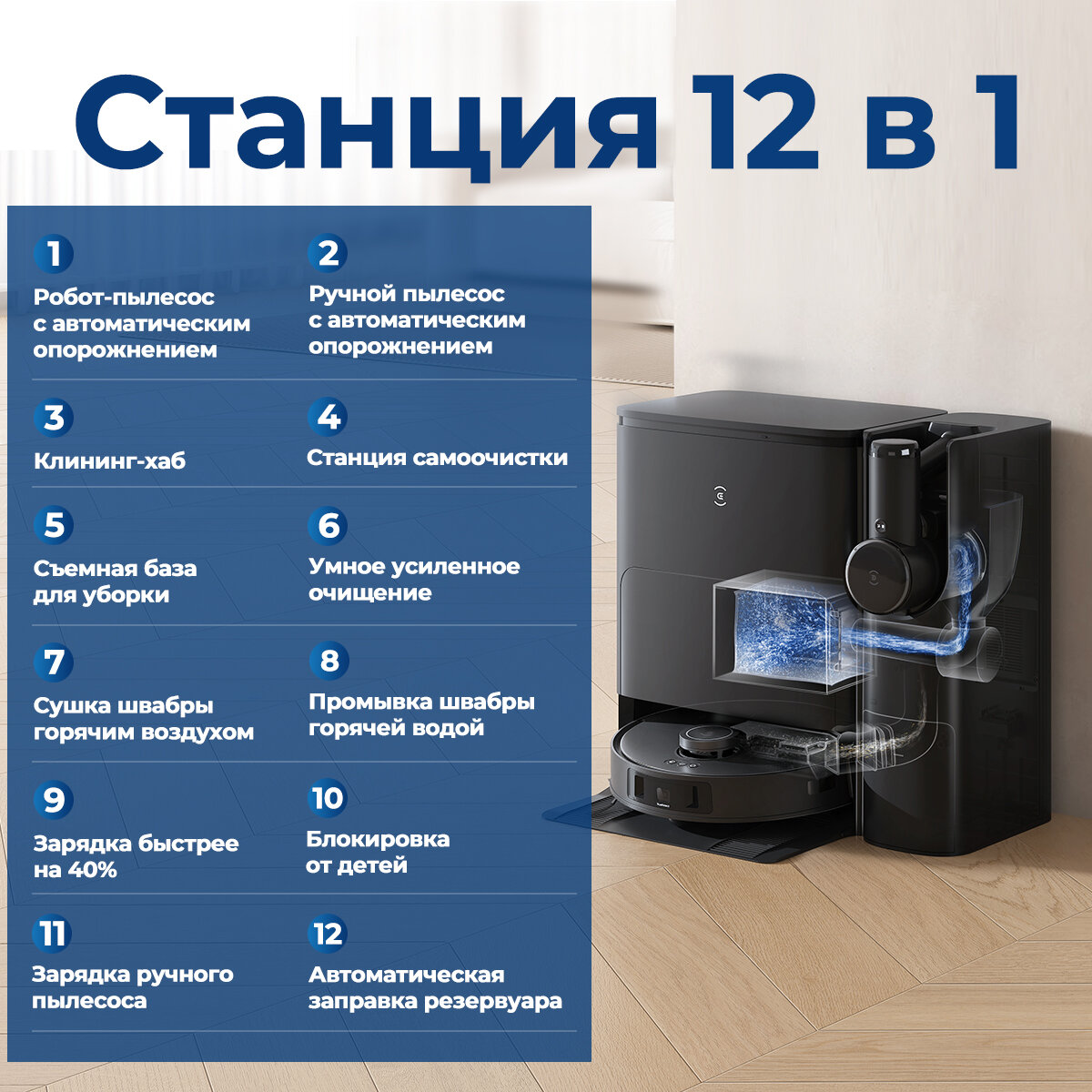 Робот-пылесос ECOVACS DEEBOT X8 PRO OMNI, 18000 Па, 6400 мАч, черный 124 735 ₽
