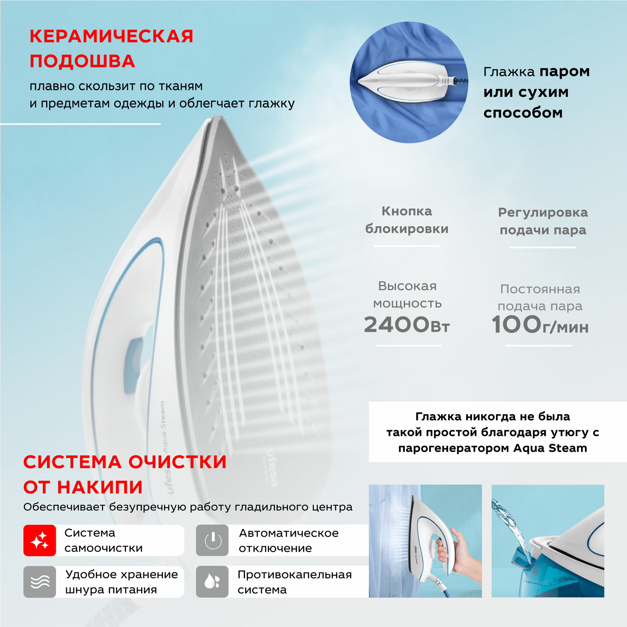 Паровая станция UFESA AQUA STEAM, синяя информация: