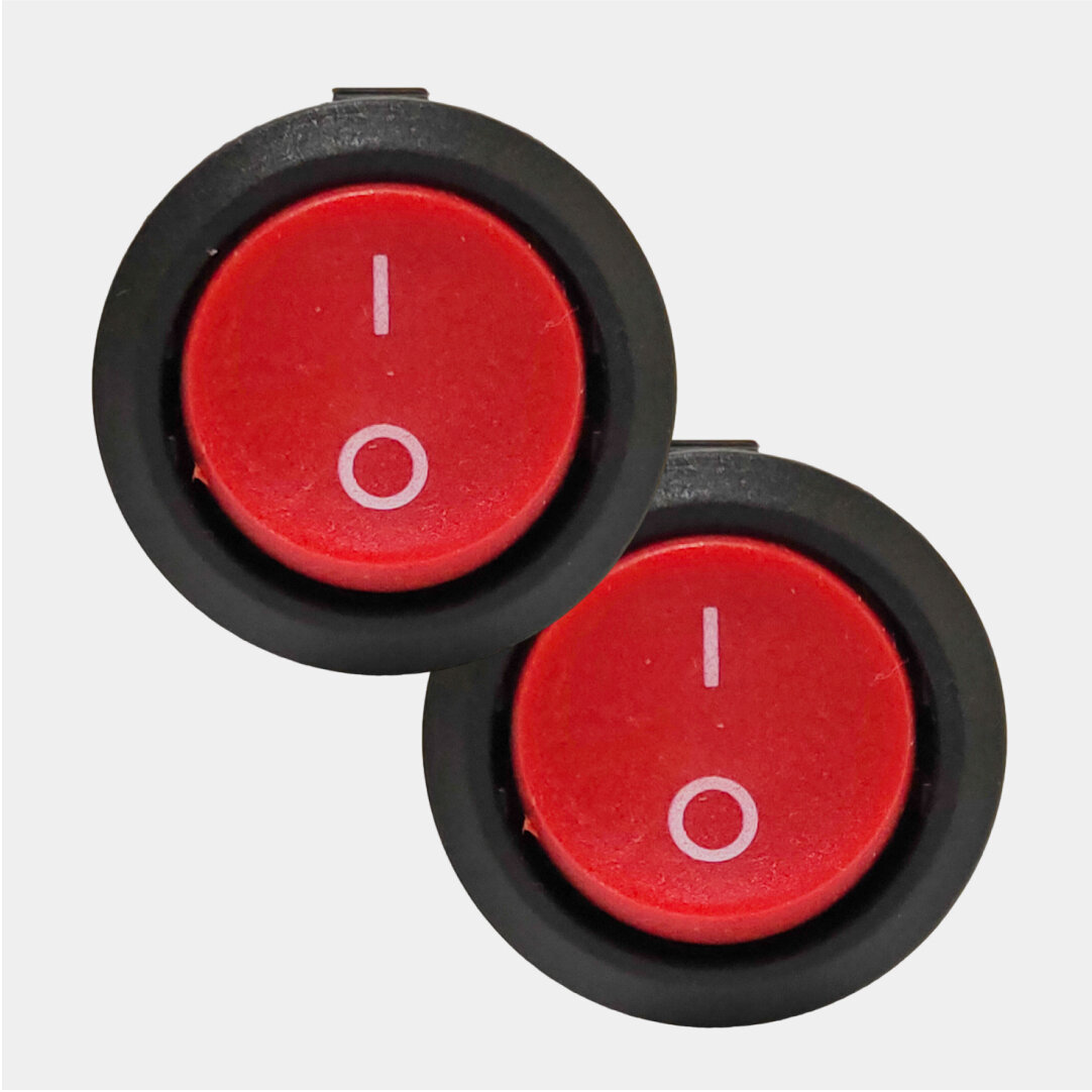Выключатель клавишный КРУГЛЫЙ 250V 6А (2с) ON-OFF комплект 2 шт, КРАСНЫЙ (+ клеммы и термоусадка) информация:
