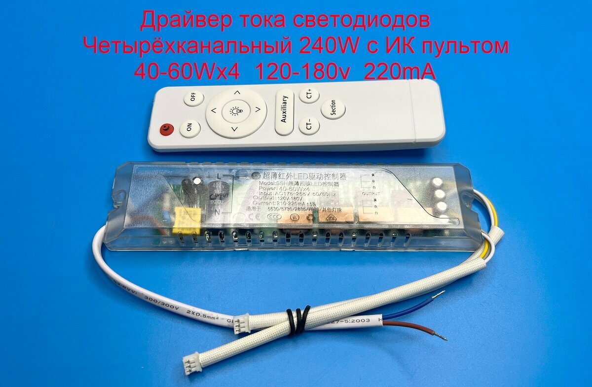 Отзывы на Драйвер тока светодиодный четырёхканальный с ИК пультом 240W (40-60)х4 120-180v 220mA