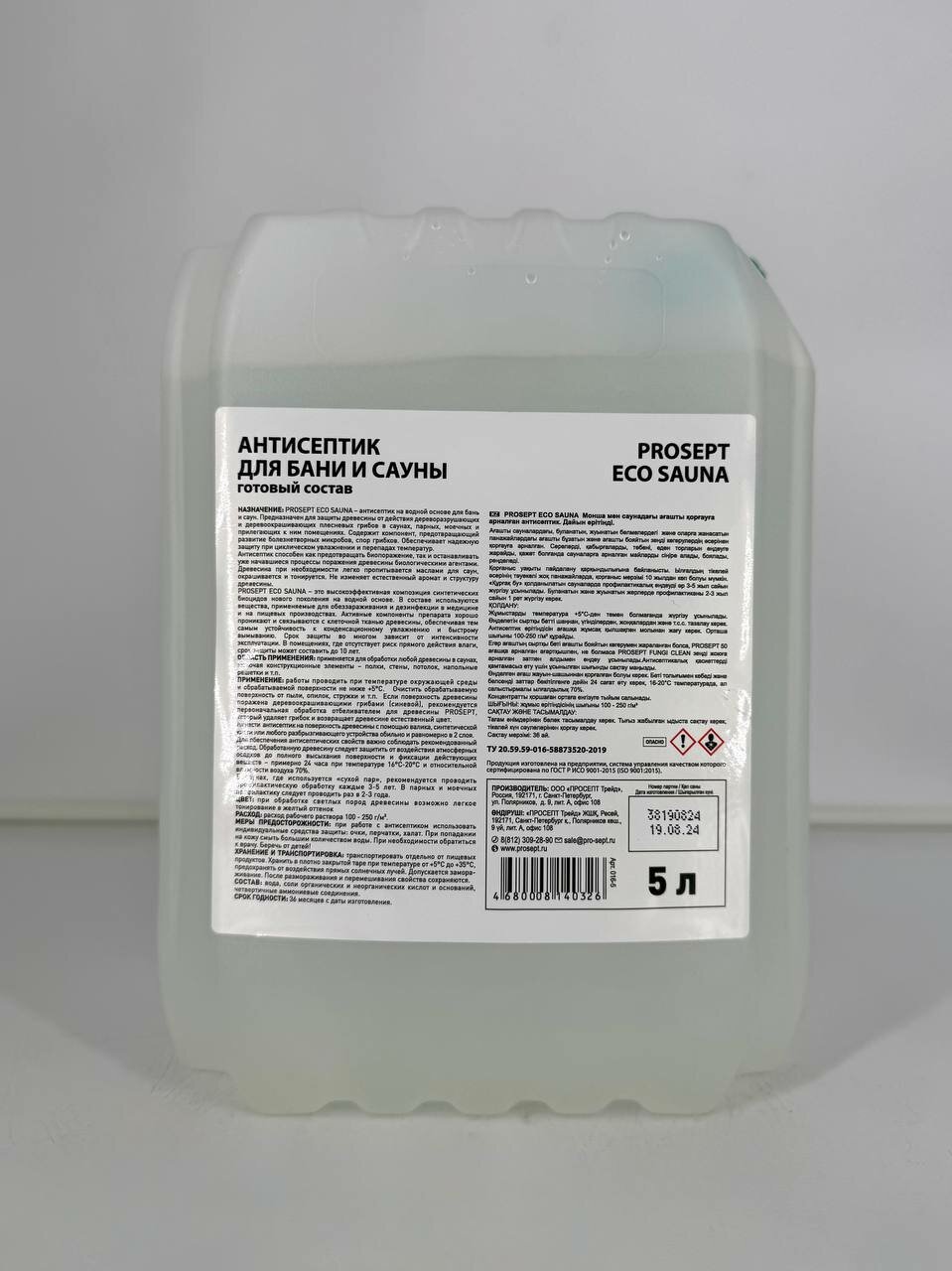 Антисептик для бани и сауны "PROSEPT ECO SAUNA" гот. состав, 10л информация: