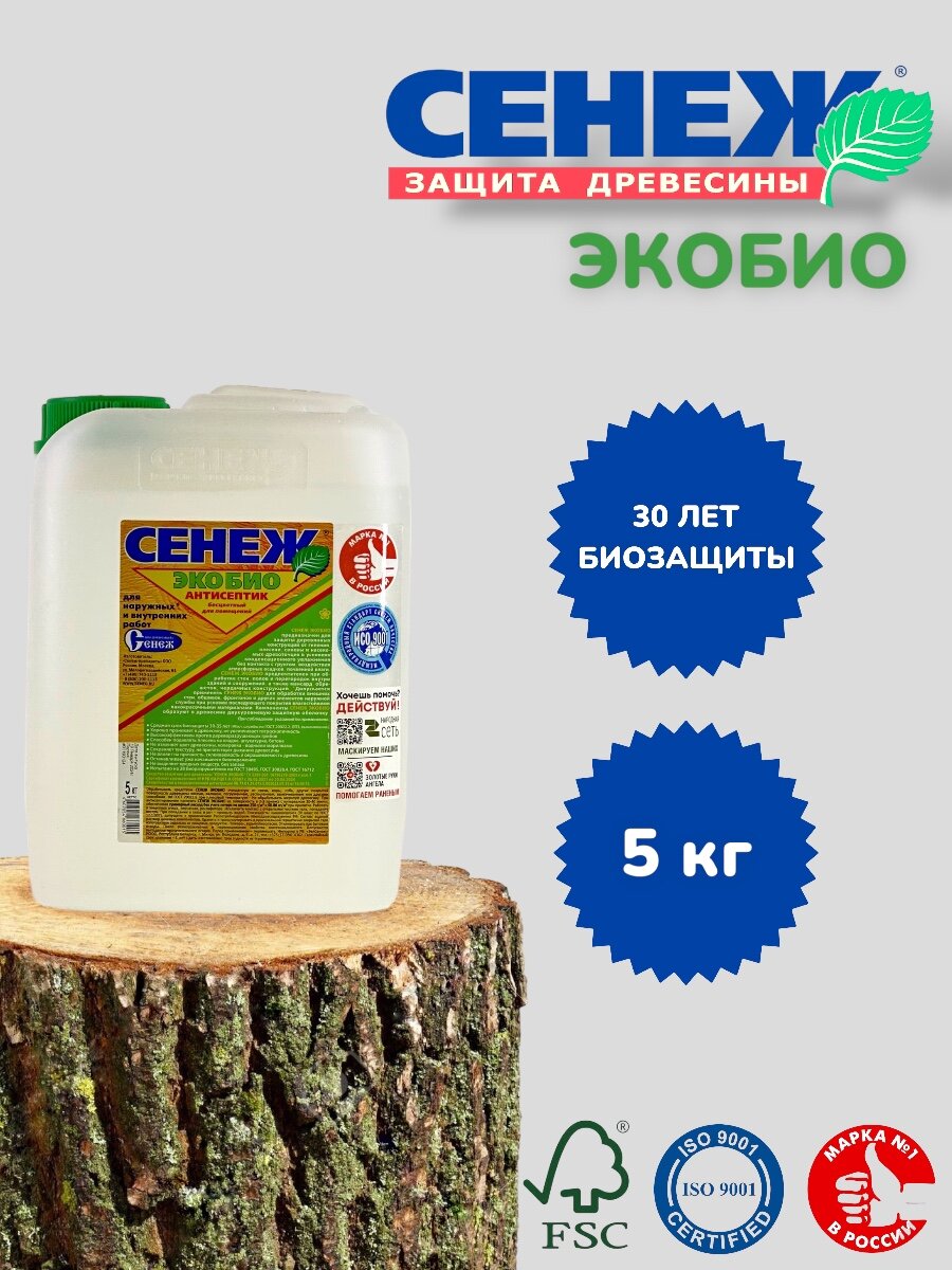 10 цен на Сенеж Экобио 5кг- экономичный бесцветный антисептик для помещений и деревянных конструкций под навесом
