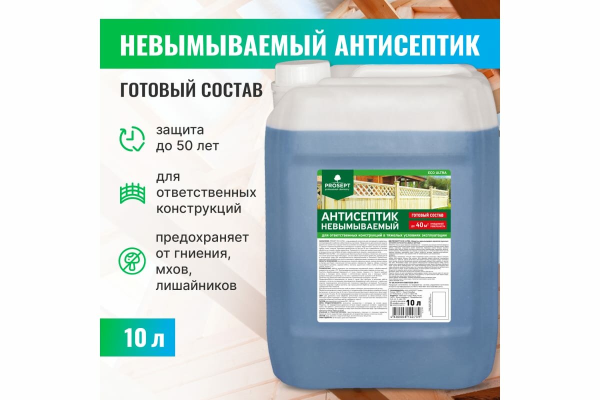 Антисептик невымываемый для ответственных работ Prosept Eco Ultra готовый раствор (10л) бесцветный