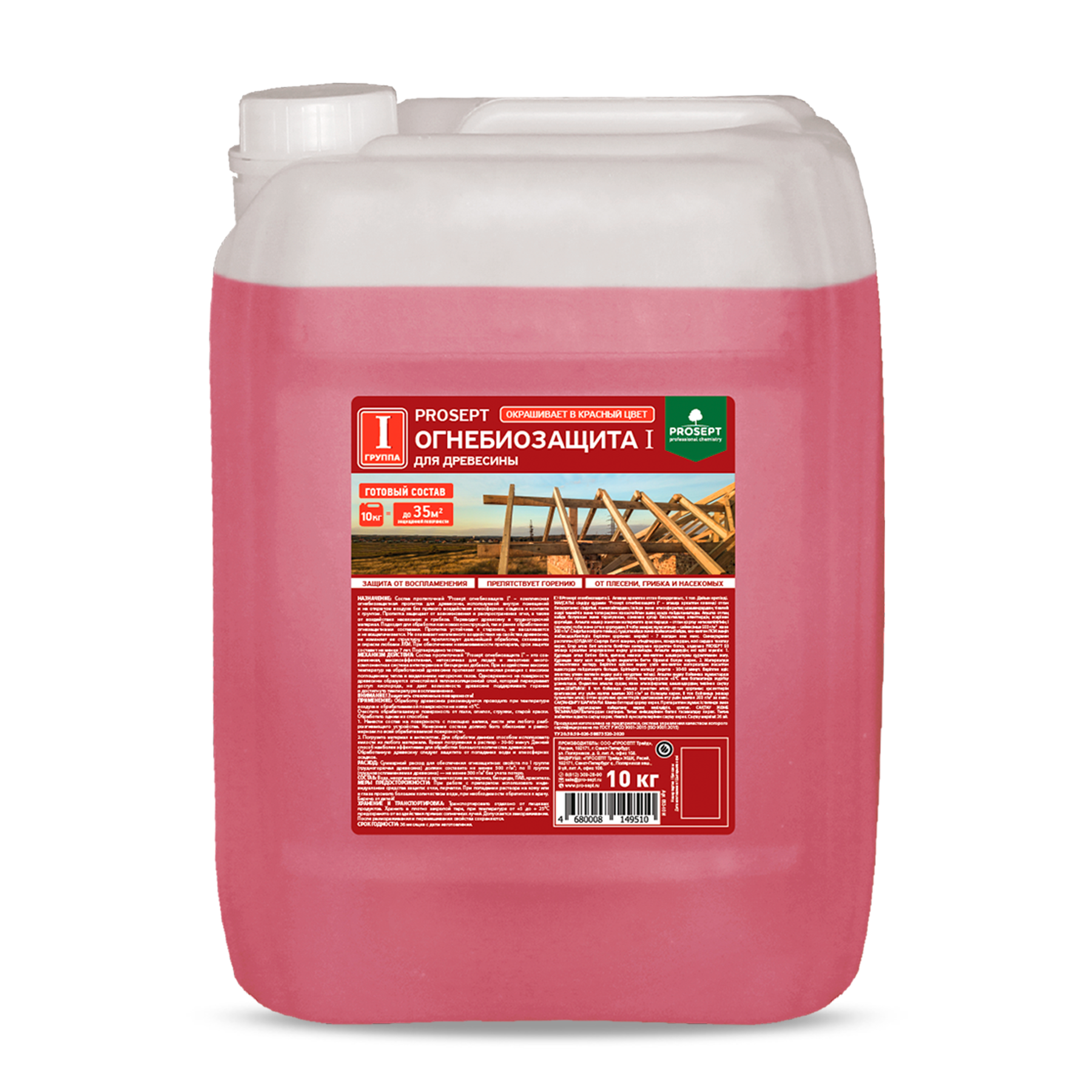 PROSEPT (Просепт) Огнебиозащита для древесины огнебио PROF l, 1 группа, красный готовый состав, 10 л информация: