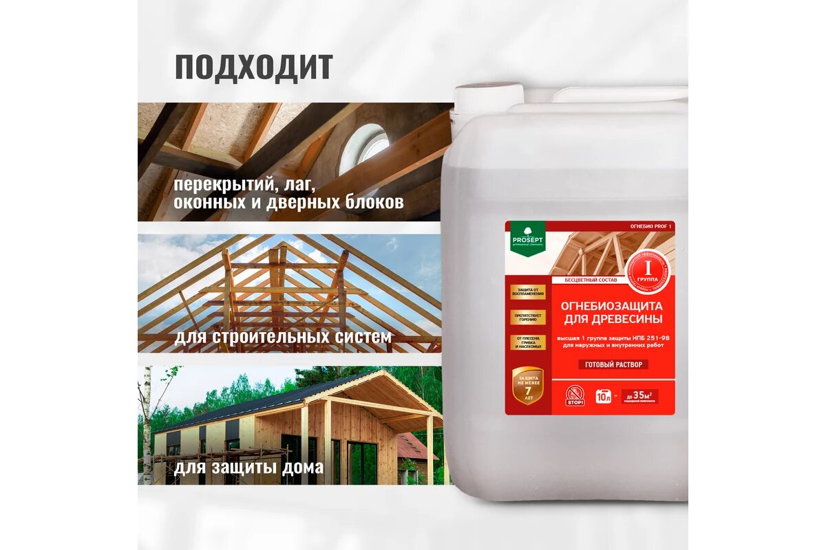 Отзывы на Огнебиозащита для древесины PROSEPT огнебио PROF 1 10 л 007-10бц